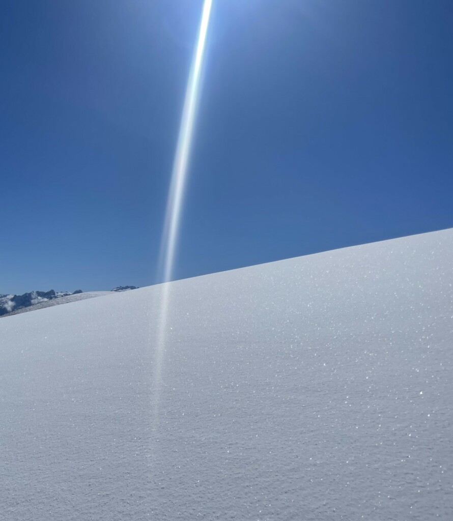 Attention, la réflexion intense du soleil sur la neige peut provoquer des brûlures rétiniennes, les lunettes sont donc obligatoires pour cette sortie. - 1 gourde (1,5 litre minimum).